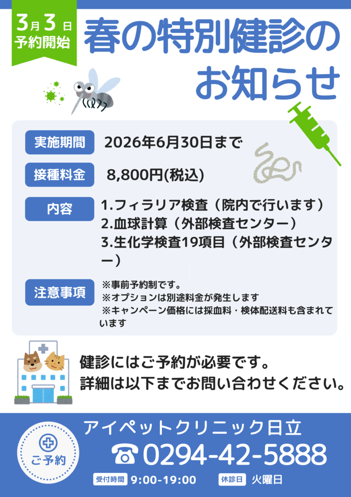 【2026年】春の特別健診キャンペーン|フィラリア検査込みで6月末までお得!